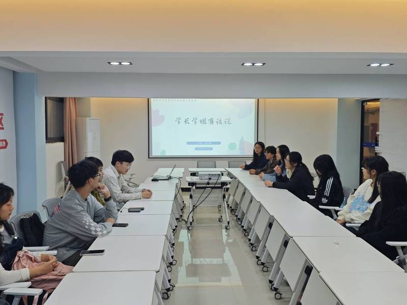 鲍光耀于2023年毕业,曾赴英国布里斯托大学攻读硕士学位,现已获得上海某半导体上市公司录用通知。在分享会上,他系统梳理了申请海外深造的流程,涵盖了院校专业选择策略、申请文书准备等要点,为有留学计划的同学厘清了关键环节。随后,他重点围绕求职经验,逐一介绍了简历撰写核心要点、高效筛选就业信息、面试技巧攻略和心理准备等问题。他特别强调,提升就业竞争力的关键在于大学期间的主动积累,他鼓励同学们要积极投身各类实践活动,全面提升个人综合素质,善用寒暑假期争取高质量实习机会,提前锻造职场适应力,为未来职业发展奠定坚实基础。在最后的互动环节,鲍光耀对同学们提出的留学细节、求职困惑及行业趋势等问题作出了耐心细致的解答。参会同学踊跃提问,现场气氛轻松活跃,反响热烈。