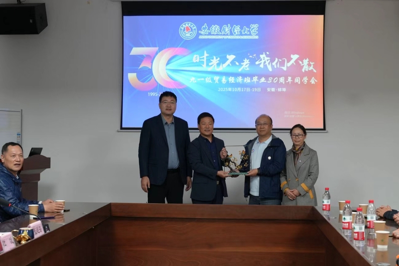 龙湖碧波映照学子情深,思源楼前定格青春记忆。10月18日下午,国际经济贸易学院在龙湖东校区二号行政楼301会议室举行95届贸易经济专业校友毕业三十周年返校纪念座谈会。学院党委书记杜斌、院长张廷海及副院长周经与二十余位从全国各地奔赴而来的校友齐聚一堂,共忆青春共话未来,座谈会由学院党委书记杜斌主持。